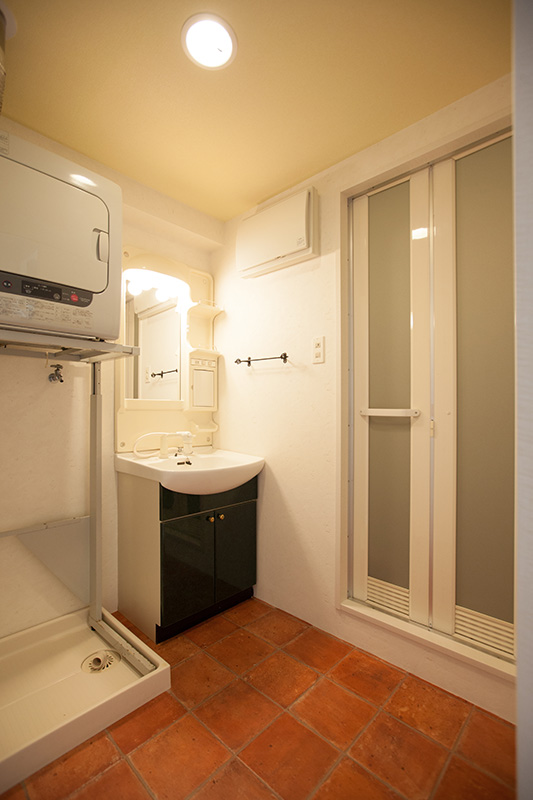洗面は床がレンガ調になってて