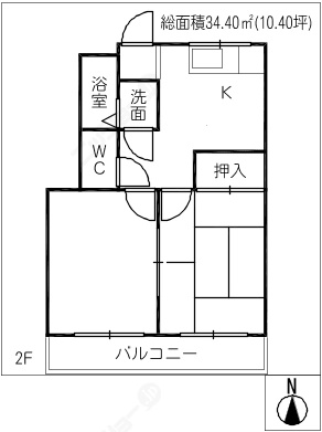 階数2階建/2階 面積34.40㎡(約10.42坪) 築年数築42年
