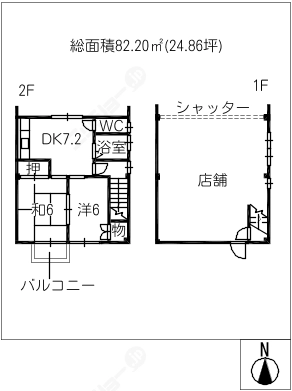 階数2階建/1階 面積82.20㎡(約24.86坪) 築年数築38年