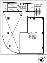 階数7階建/5階 面積88.83㎡(約26.87坪) 築年数築33年