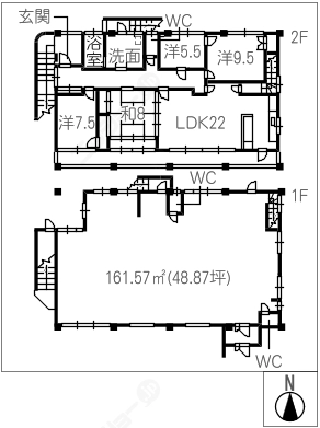 階数2階建/2階 面積252.07㎡(約76.25坪) 築年数築47年