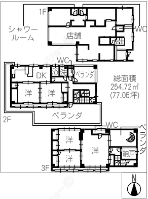 階数3階建/1階 面積254.72㎡(約77.05坪) 築年数築42年