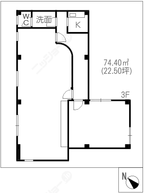 階数3階建/3階 面積74.40㎡(約22.50坪) 築年数築34年
