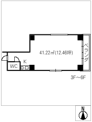 階数6階建/3階 面積41.22㎡(約12.46坪) 築年数築38年