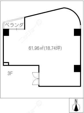 貸事務所 賃料 11万円 (共益費等 3,300円)