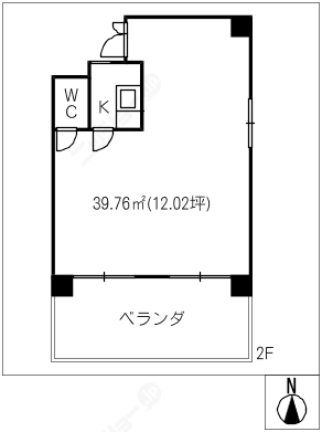 階数5階建/2階 面積39.76㎡(約12.02坪) 築年数築37年