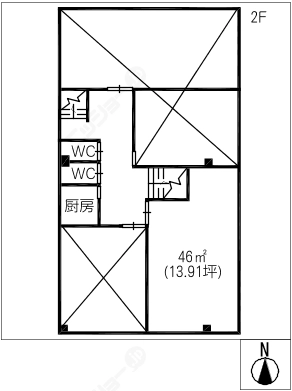 階数3階建/2階 面積46.00㎡(約13.91坪) 築年数築44年