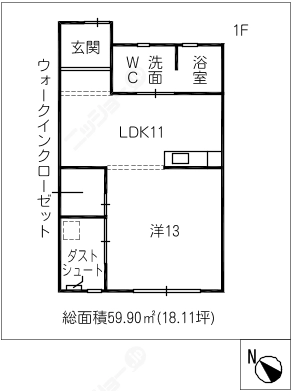 階数1階建/1階 面積59.90㎡(約18.11坪) 築年数築25年