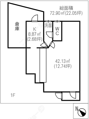 階数2階建/1階 面積72.90㎡(約22.05坪) 築年数築40年