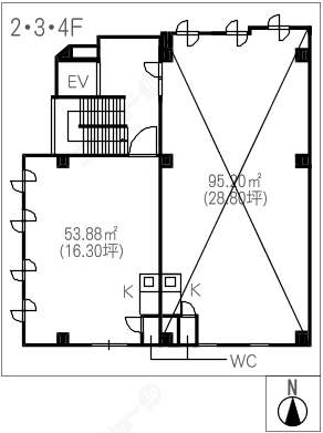 階数3階建/2階 面積62.40㎡(約18.87坪) 築年数築36年