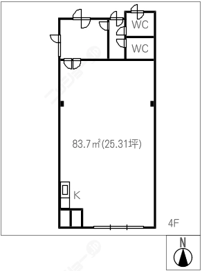 階数5階建/4階 面積83.70㎡(約25.31坪) 築年数築45年