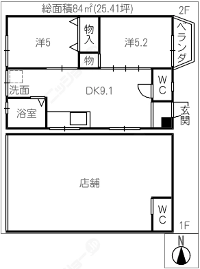 階数2階建/1階 面積84.00㎡(約25.41坪) 築年数築45年