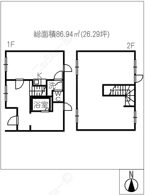階数2階建/1階 面積86.94㎡(約26.29坪) 築年数築21年
